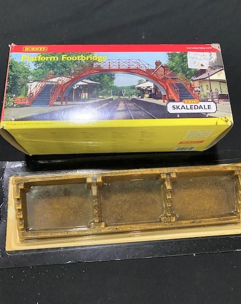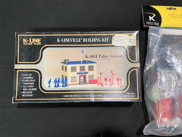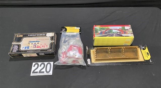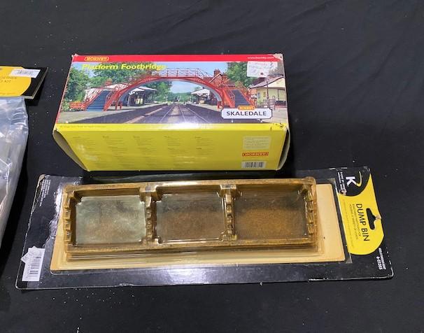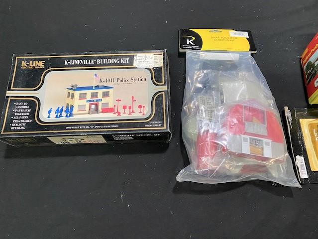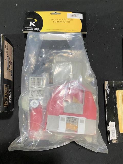 Includes: foot bridge, dump bin, snap together building kit. Estimated weight of lot: 5lbs. Measurement: 22" x 16" x 16" (largest item)