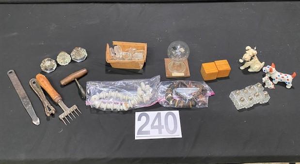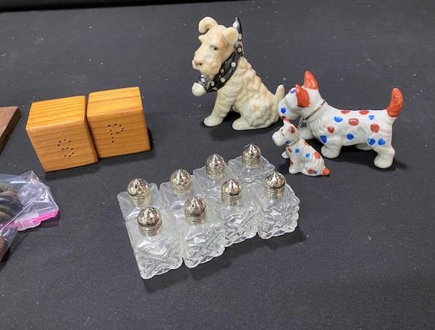 Includes: glass doorknob, Scottie dogs, salt & peeper shakers, porcelain pulls & more. Measurement: 12" x 6" (largest item)