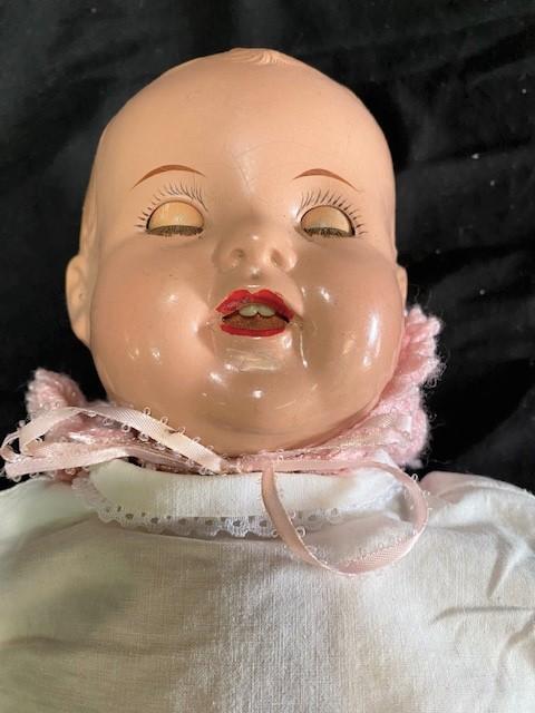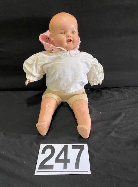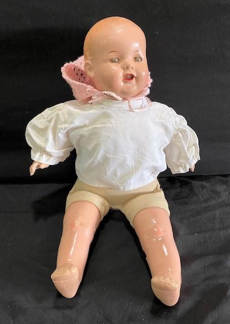 LOT#C247: Dream Baby Bisque Doll w/ Bonnet & Shirt