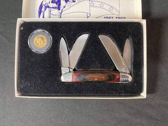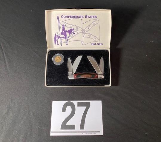 LOT#C27: Cherokee Confederate States Commemorative Knife w/ Replica Coin
