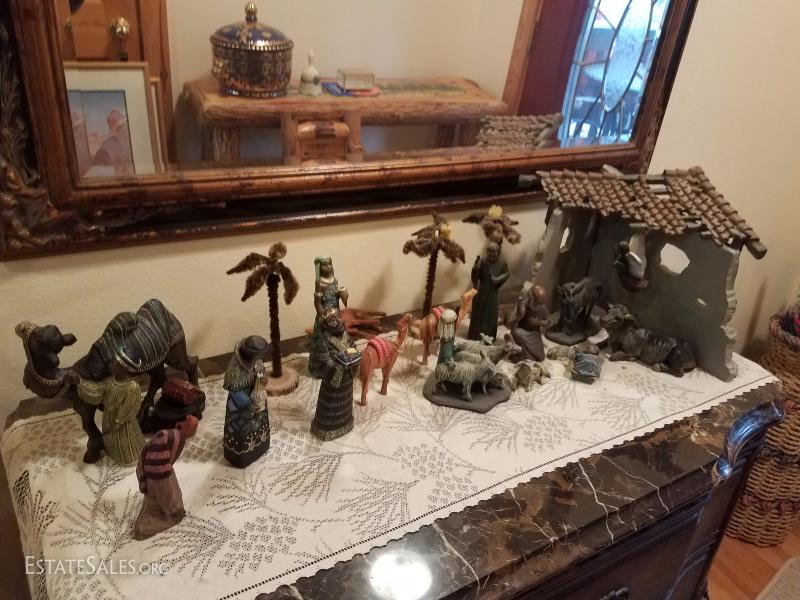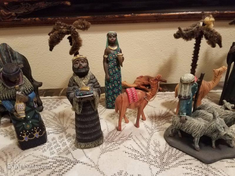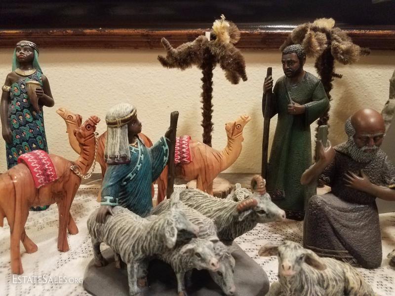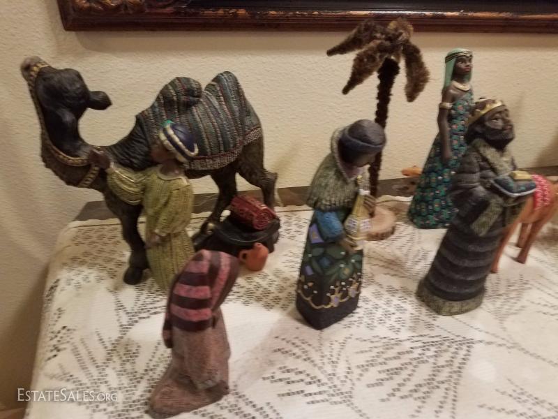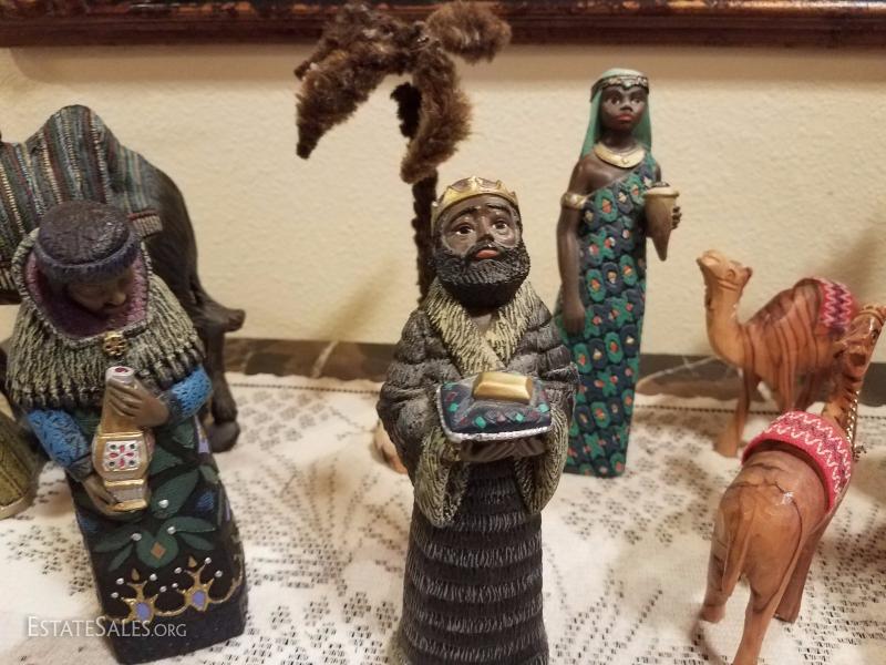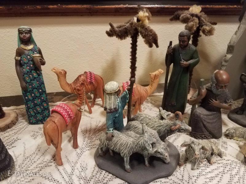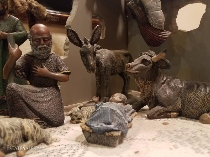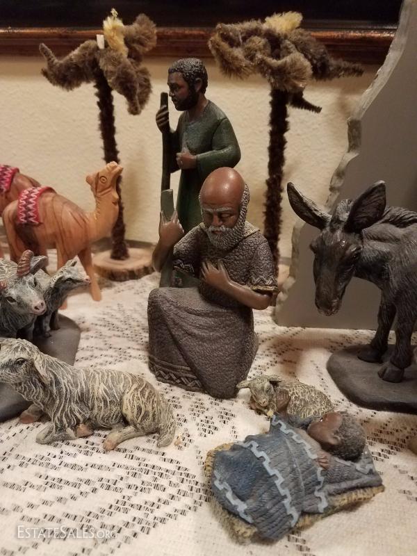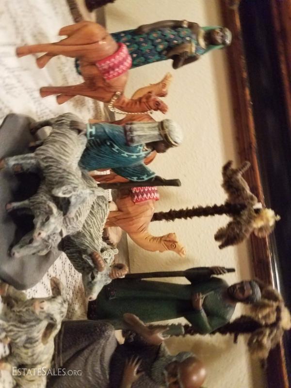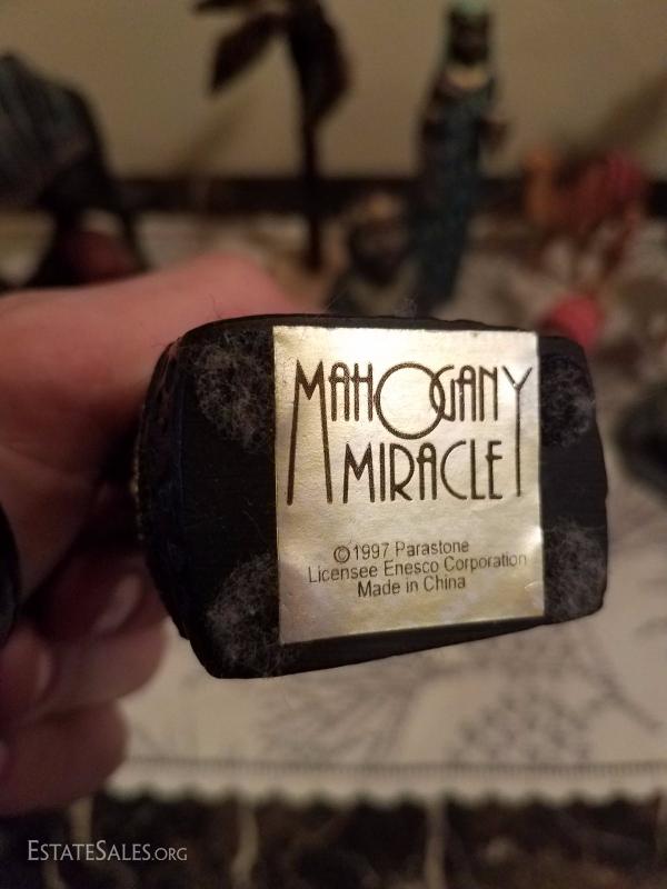 Lot-C5 21 Pc Enesco Nativity Set Mahogany Miracle 1997