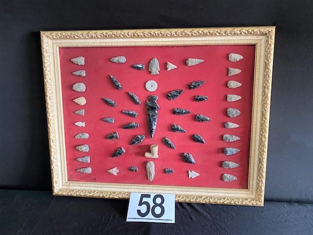 LOT#C58: Mounted Framed Arrowhead & Other Artifacts