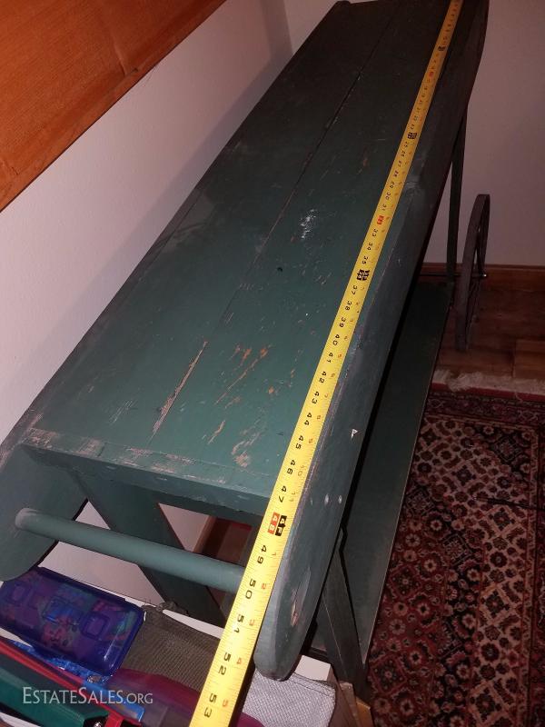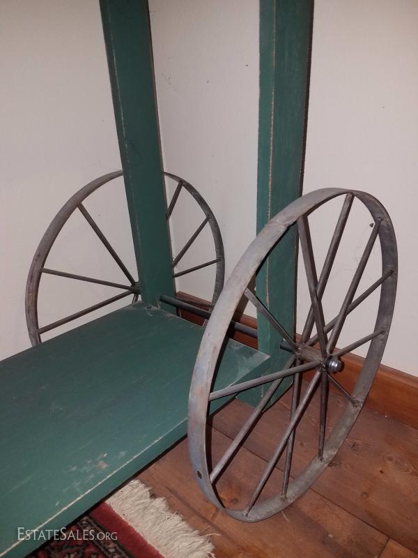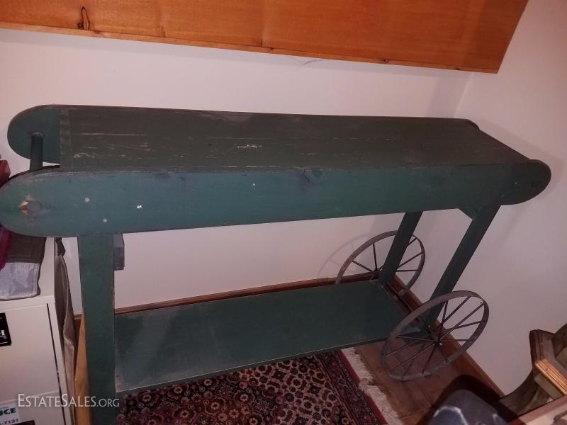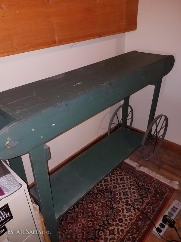 Lot-D12 Vintage Green Rolling Bar Cart Painted Wood