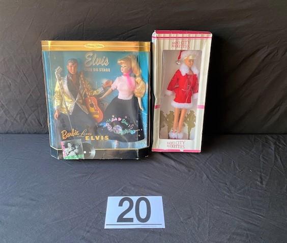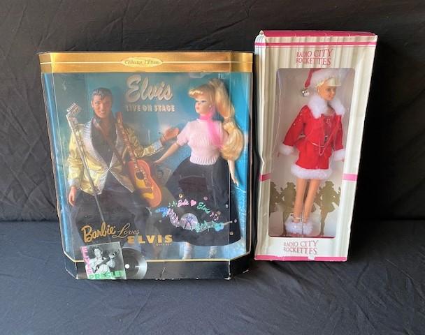 Radio City Rockettes Doll. Barbie Loves Elvis Doll. Estimated weight of lot: 2 lbs. Measurement: 14"H x 12"W x 6"D (total)