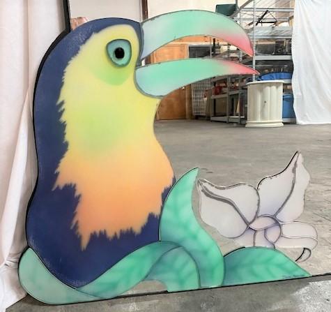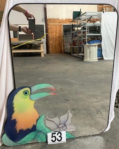 Artwork is raised on mirror. Measurement: 40"L x 32 1/2"W
