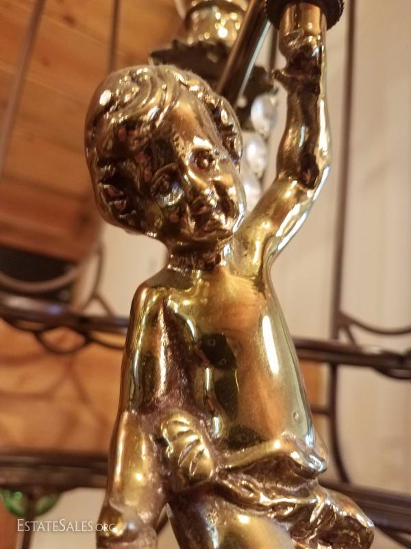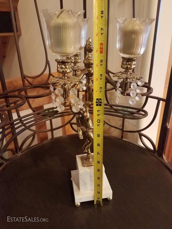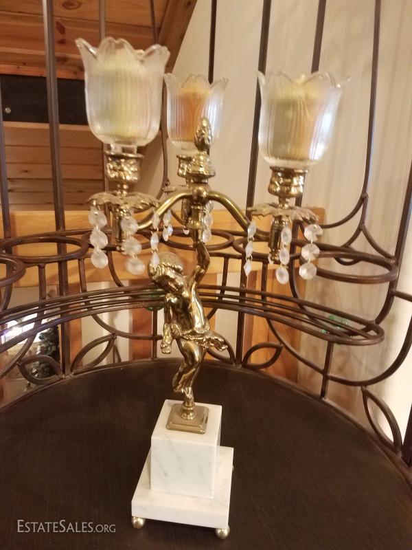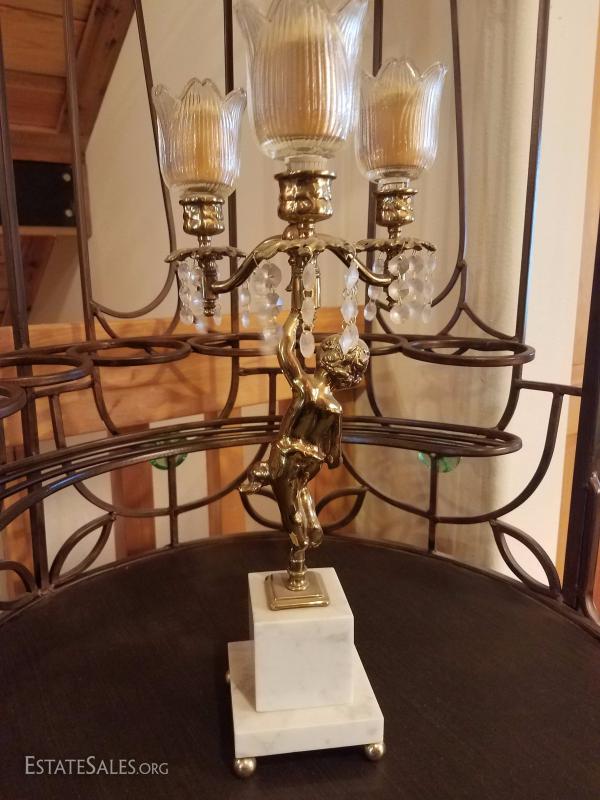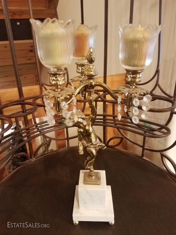 Lot-D6 3 Candle Marble Base Cherub Candelabra