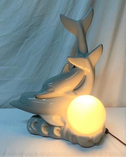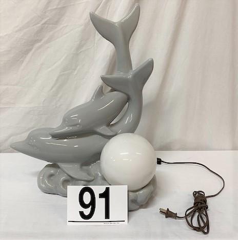 LOT#D91: Vintage Signed Harris Dolphin Lamp