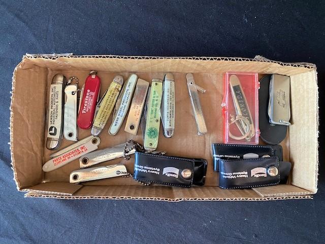 Mostly automotive knives. Estimated weight of lot: 5lbs. Measurement: 11" x 5" x 1"