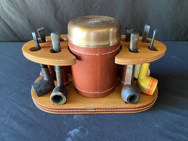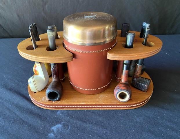 LOT#E153: Pipe Stand & Humidor with Eight Pipes Lot #2