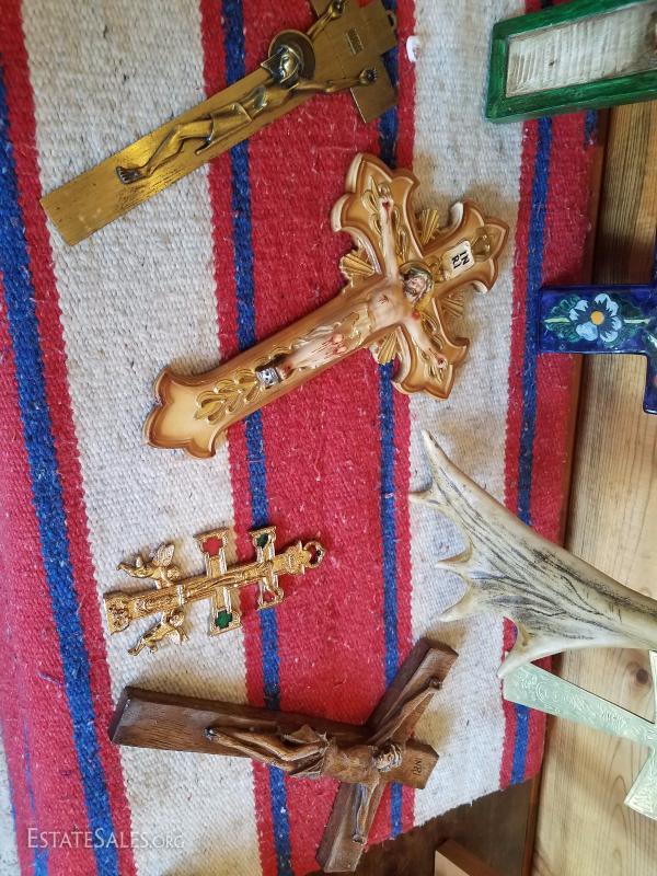Lot-E3 Lot of 11 Mixed Crucifixes Crosses Wall Hanging Religious