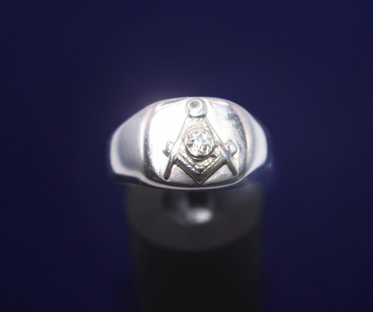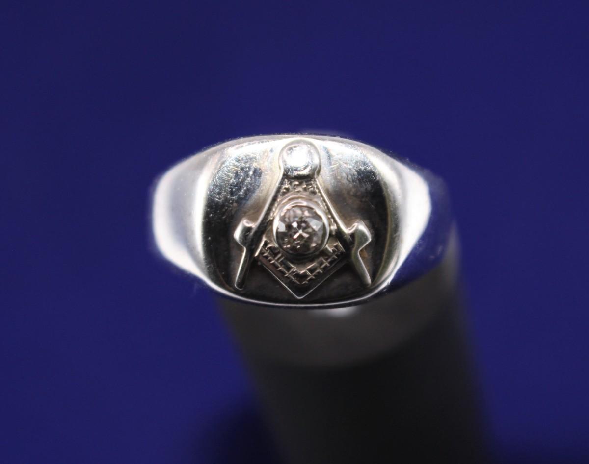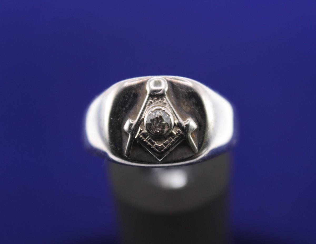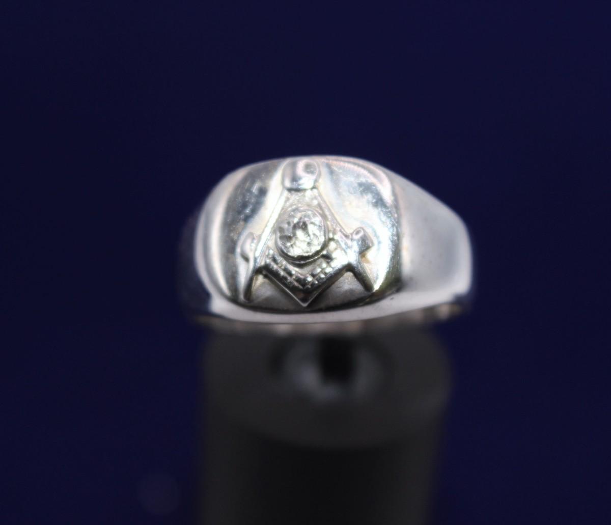 LOT#E5: 14K White Gold Masonic Ring [9.23g]