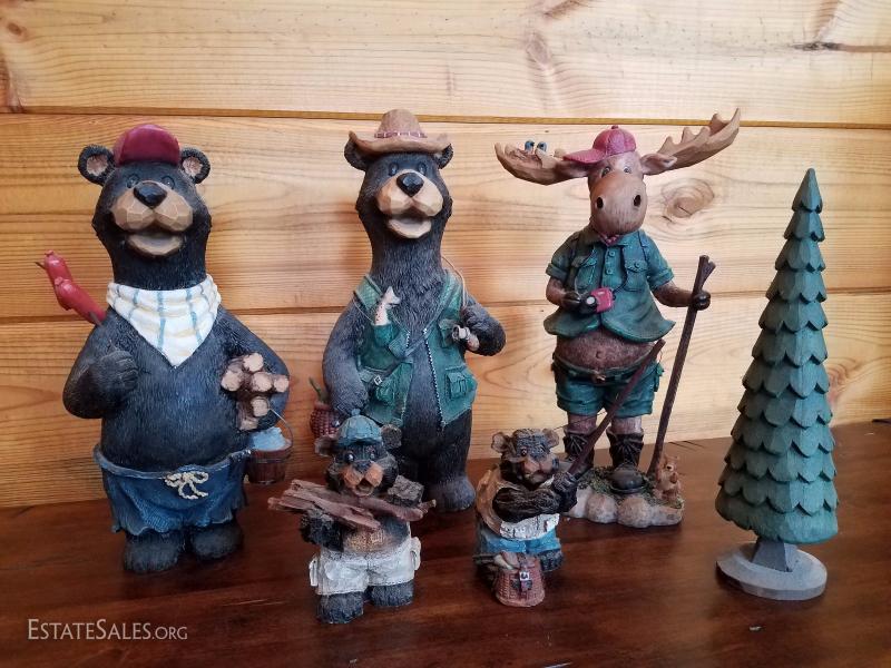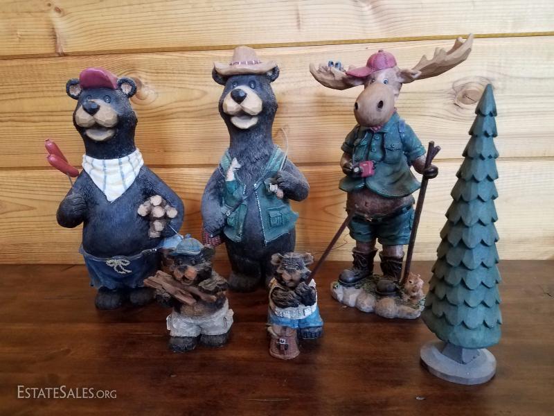 Lot-E5 Forest Creature Bear & Moose Lot Mixed Décor 6 Pc Collection