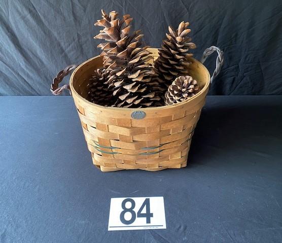 LOT#E84: Peterborough Basket with Red Wood Pinecones