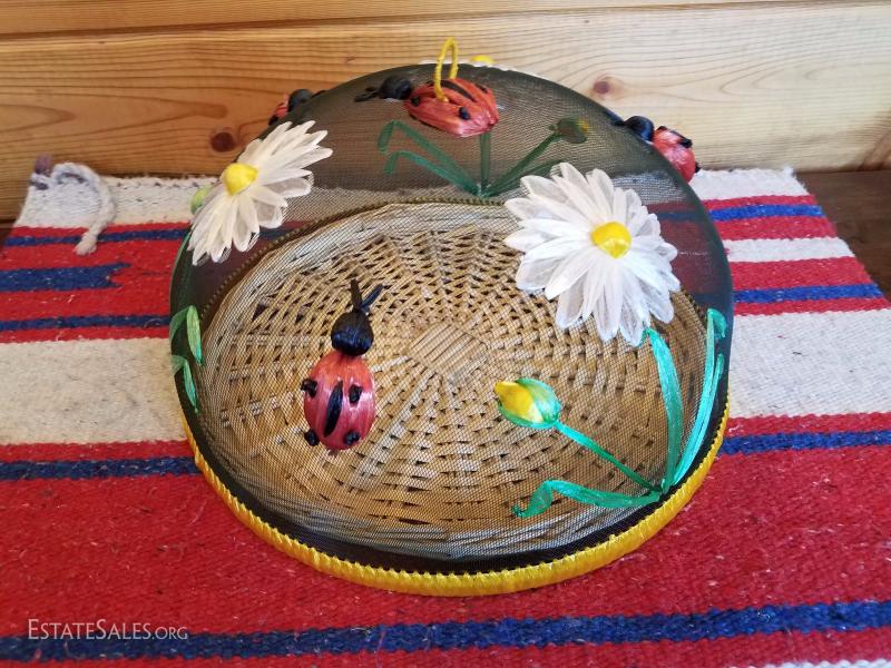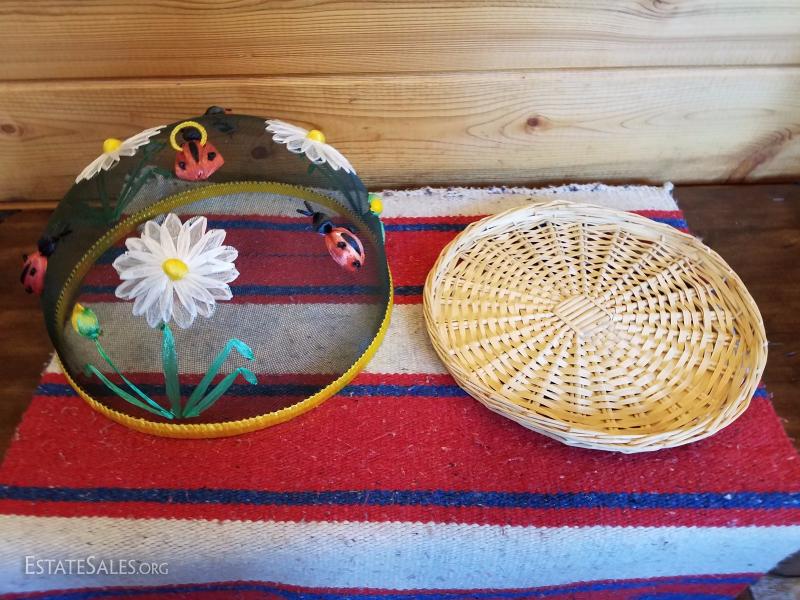 Lot-E9 2 Pc Picnic Set Wicker Platter Plus Bug Screen Cover
