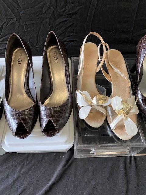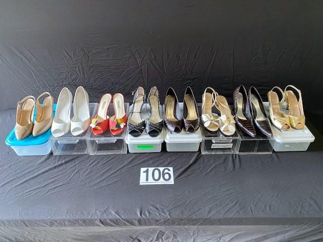Maripe, Band Lino, East Fifth, Nine West, and more. Sizes 9 and 10. Eight pairs. Show signs of wear.