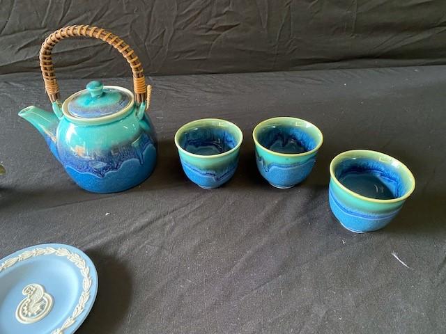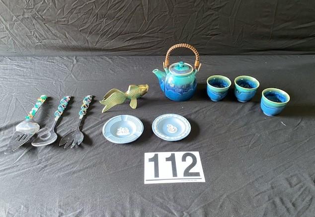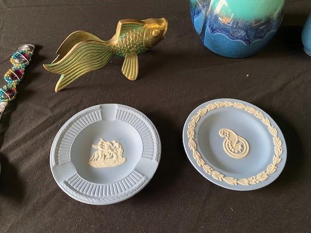 Includes sake set, brass koi fish, Wedgwood, and more. Total of 10 pieces.