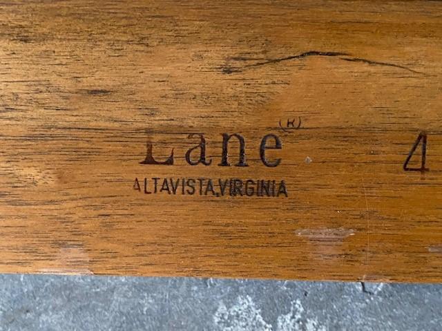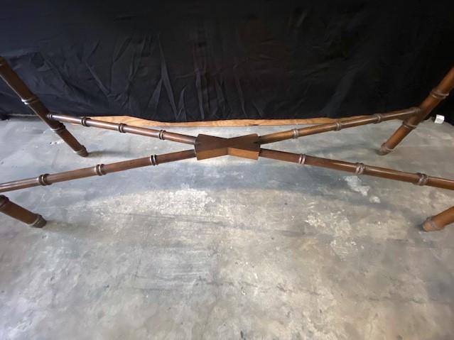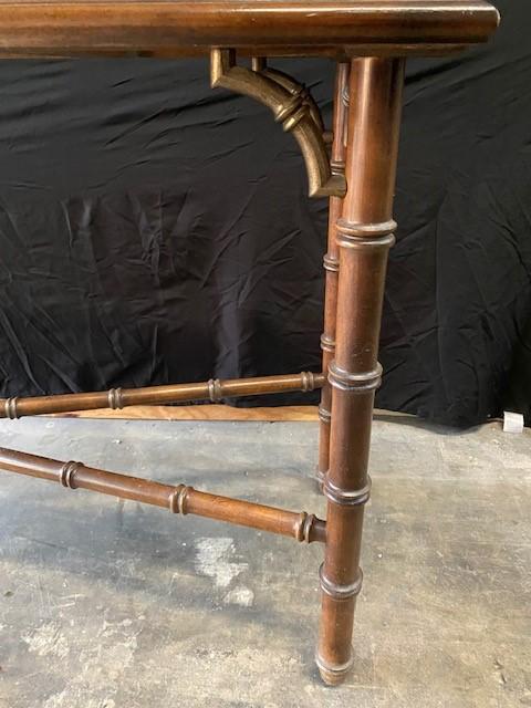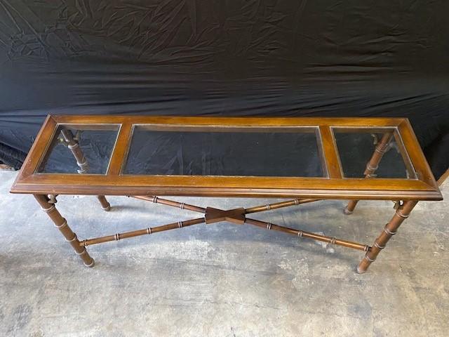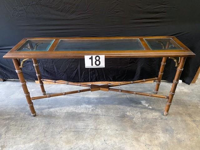 LOT#F18: Faux Rattan Lane Hall Table with Glass Inserts