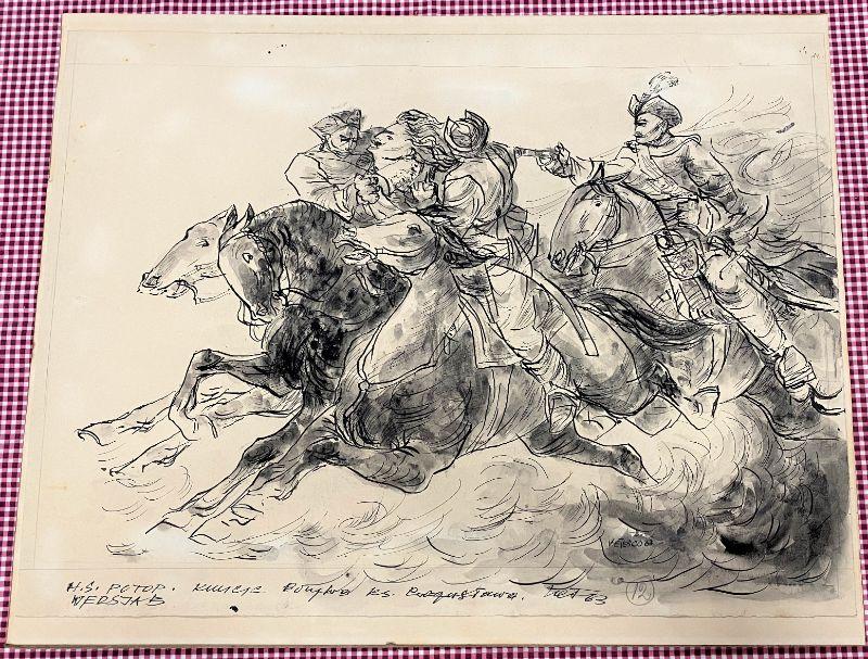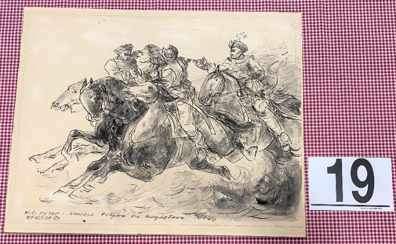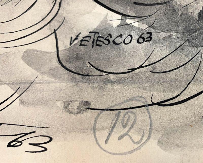 LOT#F19: 1963 Wladyslaw Vetesco [1911-1971] Wash Ink on Paper