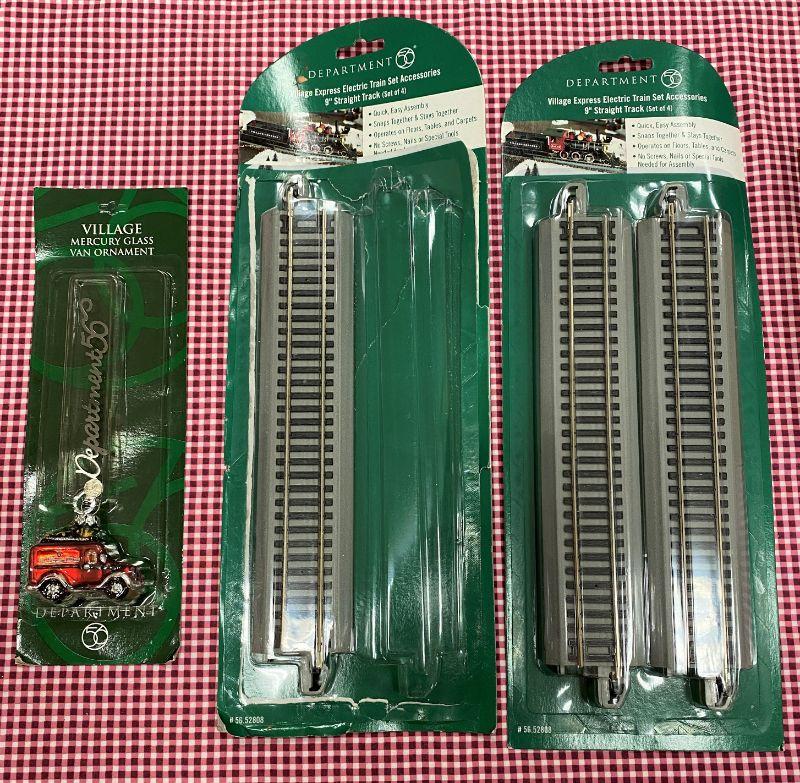 Department 56 Straight Train tracks, Mercury Glass Van ornament, Lemax Porcelain brick wall, unmarked Christmas Tree & 3 Department 56 Classic Cars (1958 Corvette Roadster, 1959 Chevy Impala Convertible & 1957 Ambulance)