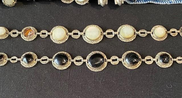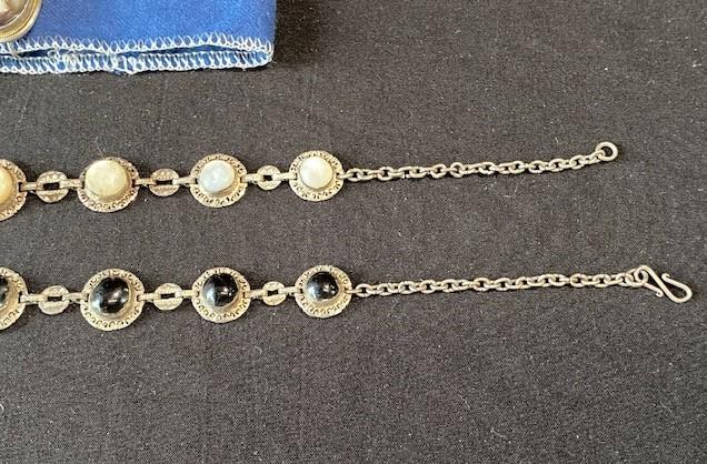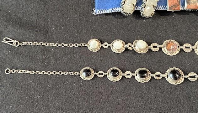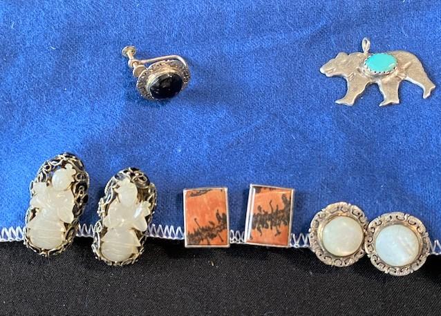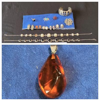 Includes: moonstone necklace, mother of pearl earrings & amber pendant. Niton XRF Analyzer used to detect metal purity. Estimated weight of lot: 1lbs. Measurement: 6" x 6" x 6"