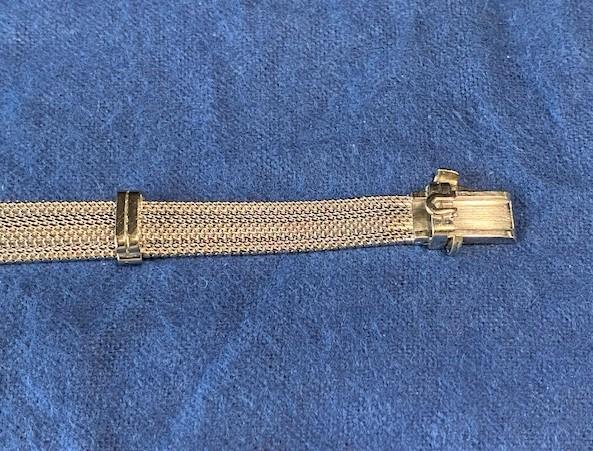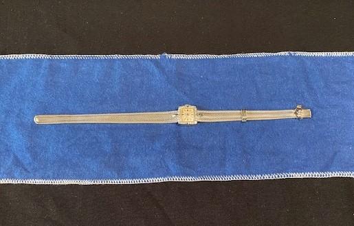 With diamonds. Not working at time of cataloging. Band length 8". Estimated weight of lot: 1lbs. Measurement: 4" x 4" x 4"