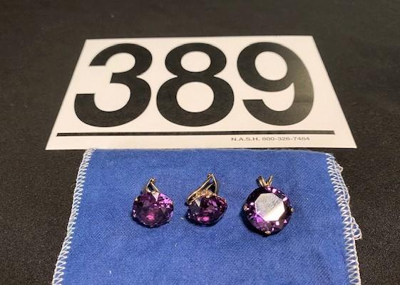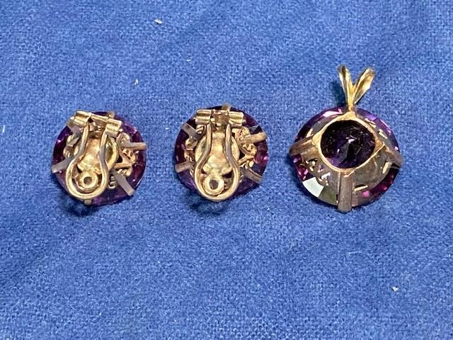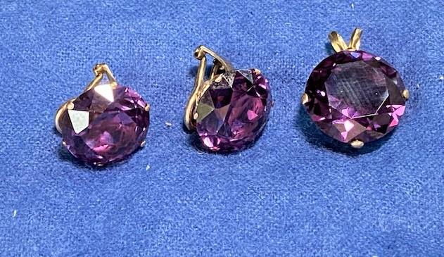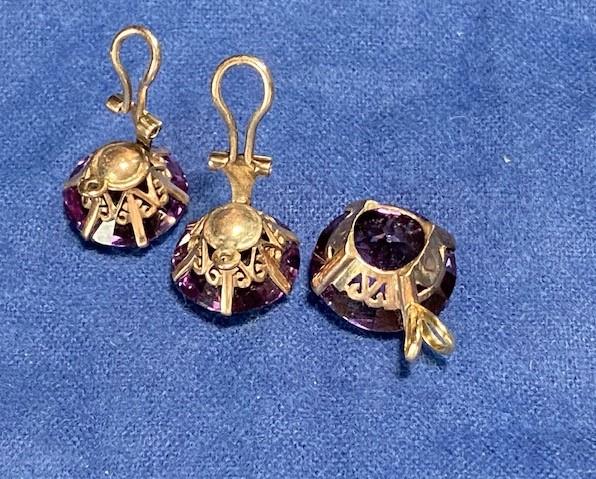 LOT#F389: Tested 10K Vintage Amethyst Earrings & Pendant Set [15g]