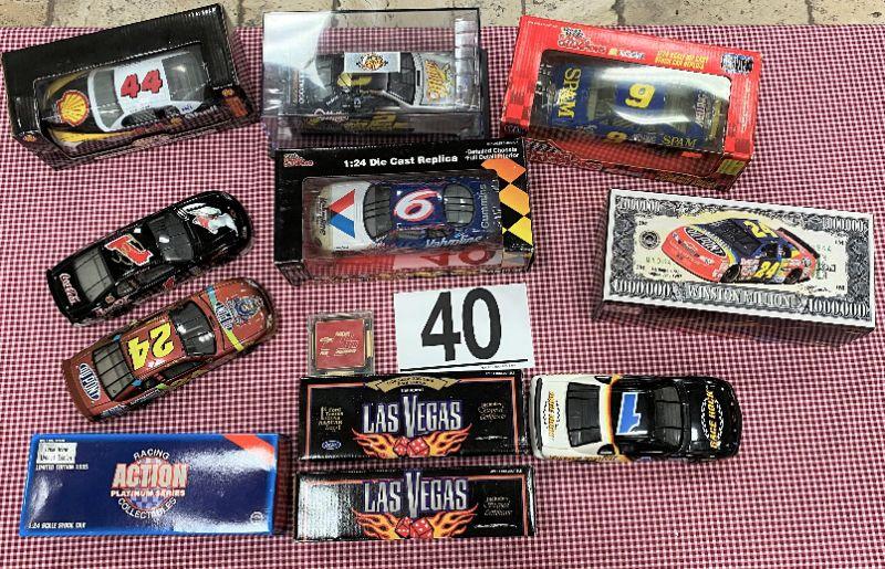 Assorted 1:24 scale diecast replicas. Assorted drivers. Some limited edition. Dimensions: (largest) 10L x 4 1/2"W.
