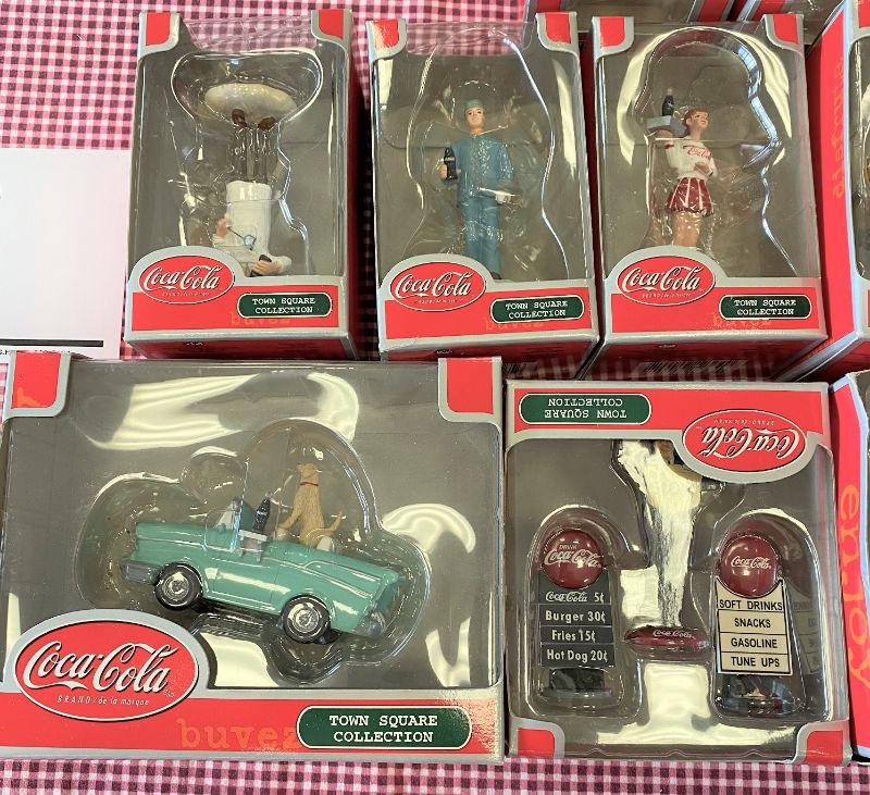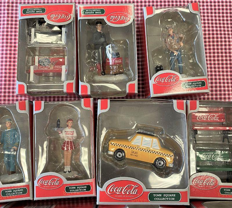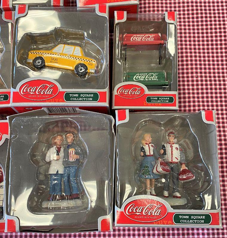 Coca Cola Town Square Pieces. In original boxes. Dimensions: 6 1/2"l x 5"W (largest one)