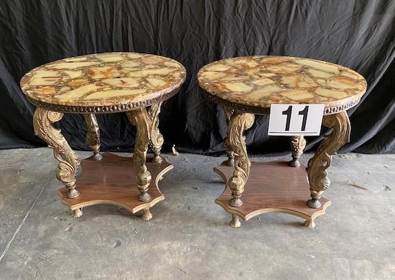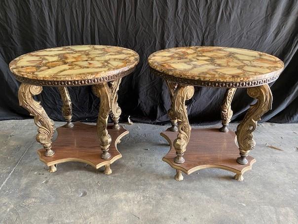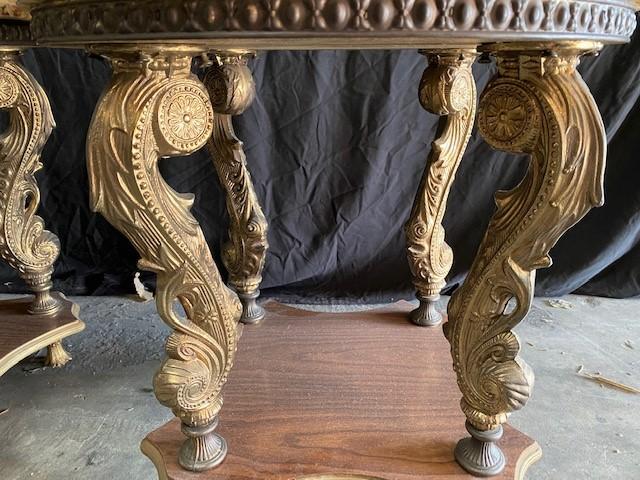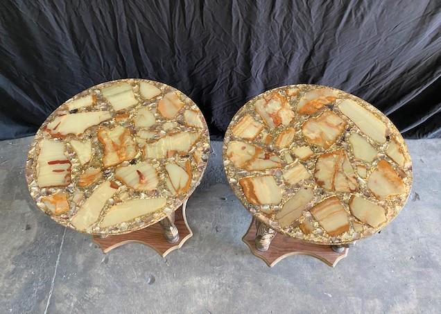 M.C.M. = Mid-Century Modern. Possible for Muller's of Mexico. Alabaster inlay. Stamped "Mexico". Estimated weight of lot: 100lbs. Measurement: 22"Diameter x 22"H
