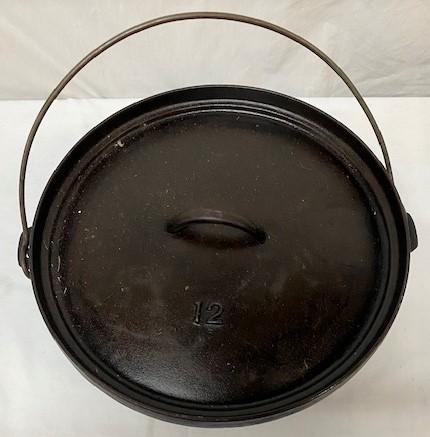 LOT#G114: Unmarked #12 Dutch Oven with Feet