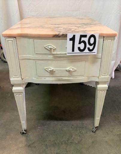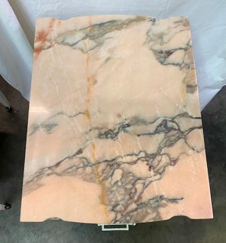 Pink marble (from Belgium). Marble is separate. Deep single drawer. Estimated weight of lot: 40lbs. Measurement: 24 1/2"H x 20"W x 25 1/2"D