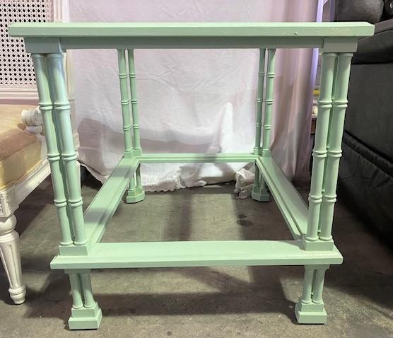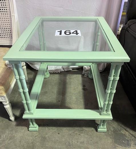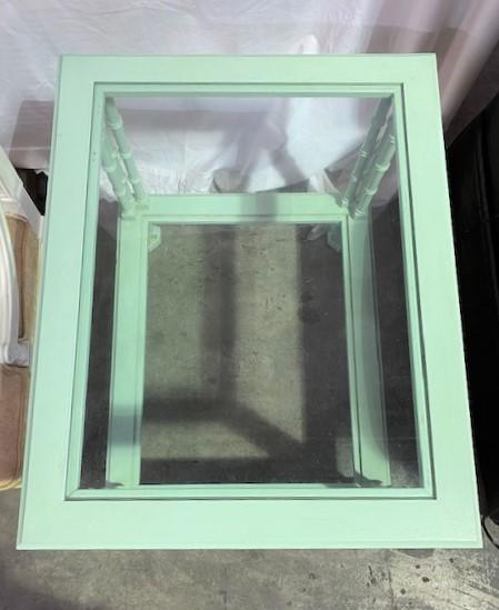 LOT#G164: Mint Colored Tiered Glass Top Table