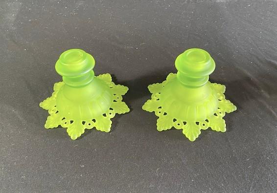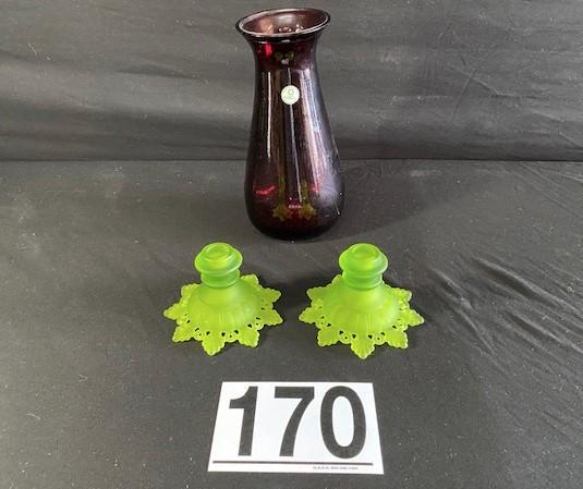 LOT#G170: Satin Glass Candle Stick Holders & San Miguel Vase