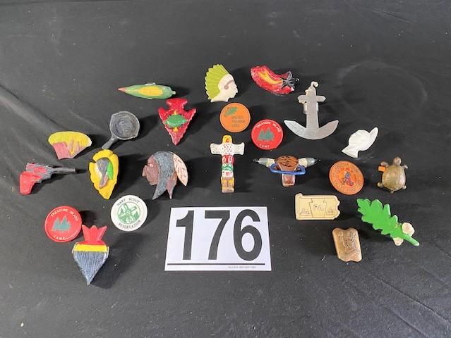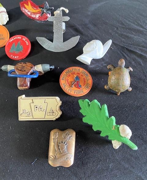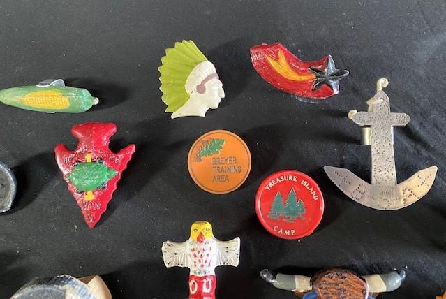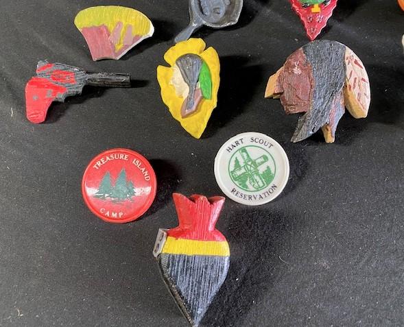 LOT#G176: Vintage Boy Scout Neckerchief Slide Lot (Many Hand Carved)