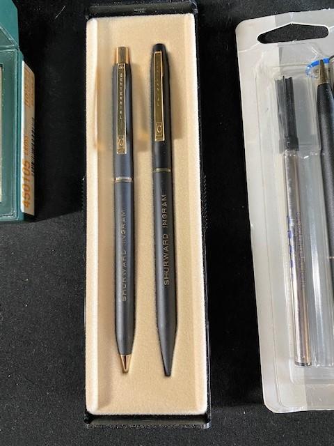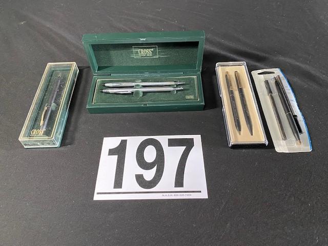 2 pen/pencil sets & 1 pen. 8 pieces including fills. Estimated weight of lot: 3lbs. Measurement: 7 1/4" x 3" (largest)