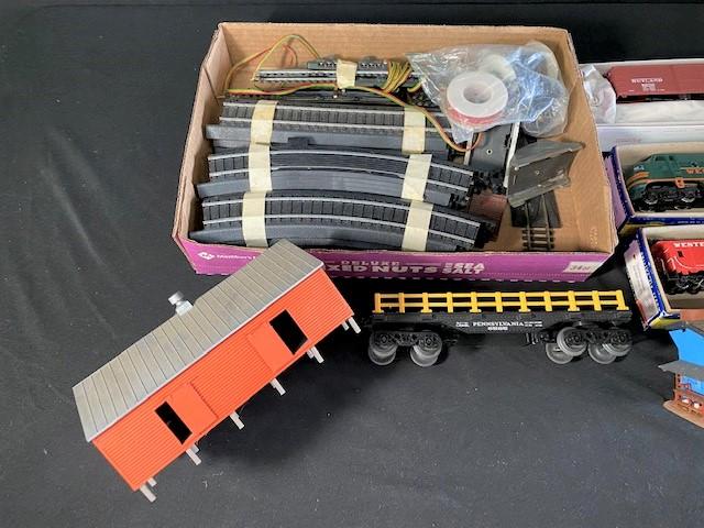 Houses, tracks, cars, people, some NOS & more. Estimated weight of lot: lbs. Measurement: 24" x 16" x 10" (box lot size)