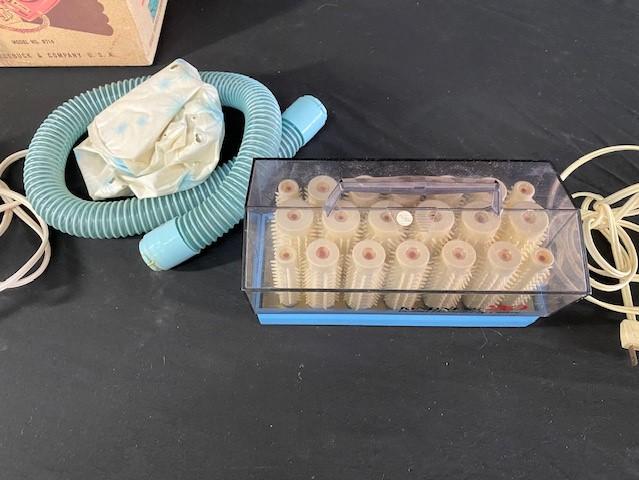 Model#18714. Working at time of cataloging. Sold as is. Estimated weight of lot: lbs. Measurement: 13"H (box for dryer) // 9 1/4" (curlers)