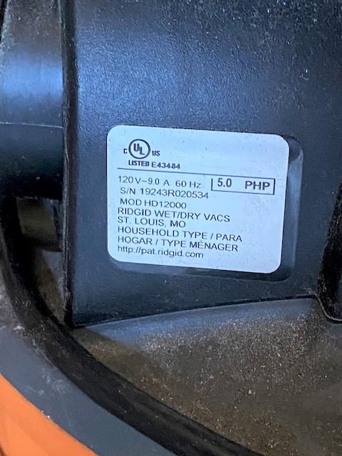 LOT#G237: Rigid 12gal Shop Vac with Attachments