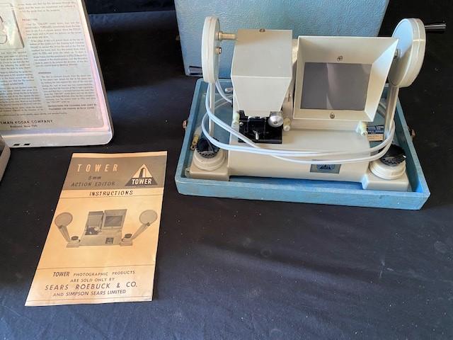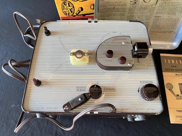 Action Editor; Brownie Projector. Bother in working condition. Estimated weight of lot: 15lbs. Measurement: 18 1/2" x 12" x 9"