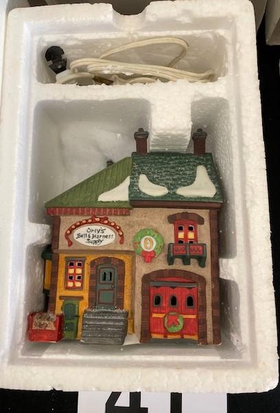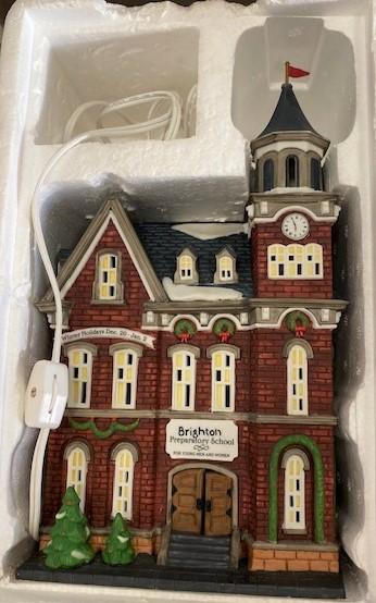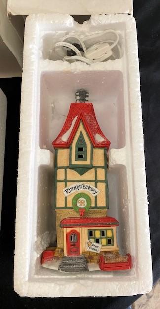 2 Department 56 Heritage Village Collection North Pole Series including: "Rimpy's Bakery" & Orly's Bell & Harness Supply" & 1 Christmas in the City Series "Brighton School"