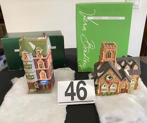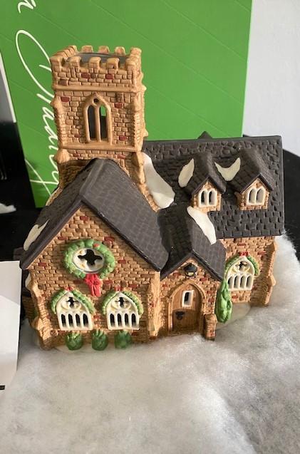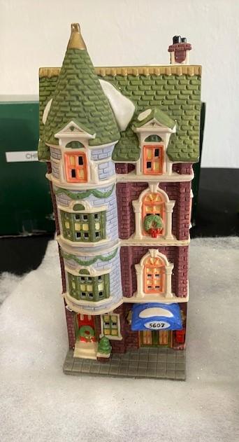 Department 56 Heritage Village Dickens' Village Series "Knottinghill Church" 1989 & Christmas in the City "5607 Park Avenue Townhouse" 1989. Repairs has been made to the Townhouse.
