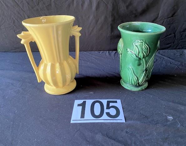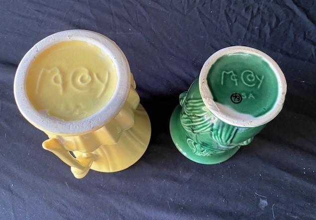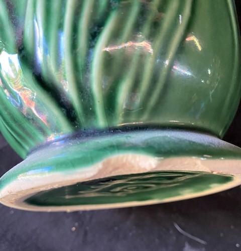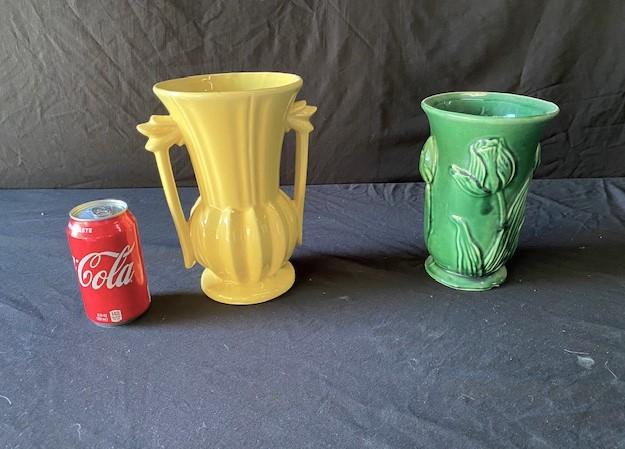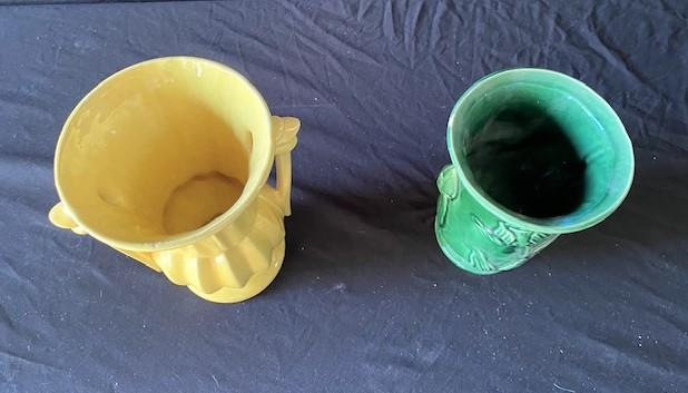 Small chip on base of green vase. Measurement: 9"H x 8" diameter (largest item)