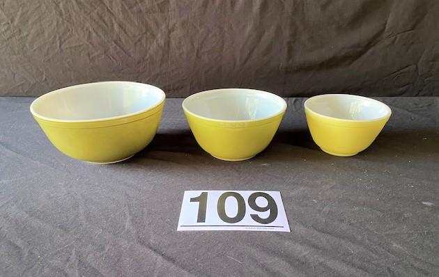 LOT#H109: 3 Mid-Century Pyrex Bowls