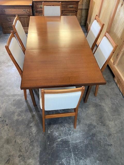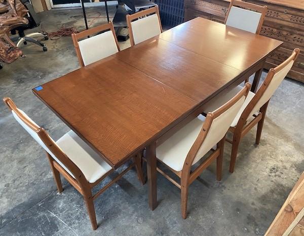 Made in Denmark. Measurement: 66"L x 33"W x 29"H (table with leaf) | 18" (seat for chair)