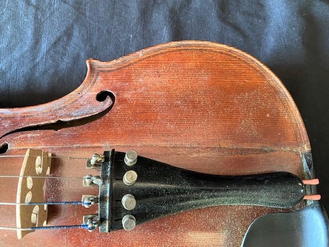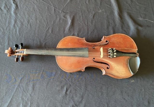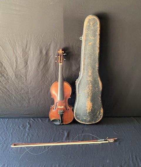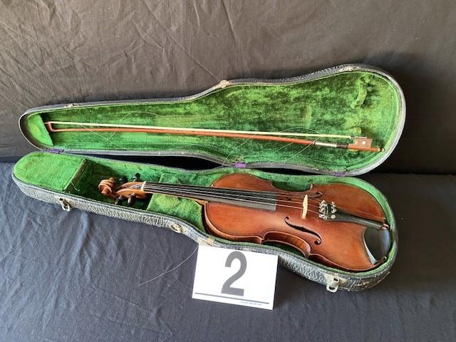 Made in Germany. Includes: original walrus case. Crack that has been repaired on violin (pictured). Estimated weight of lot: 5lbs. Measurement: 31"L x 9 1/2"W x 3 3/4"D (case)