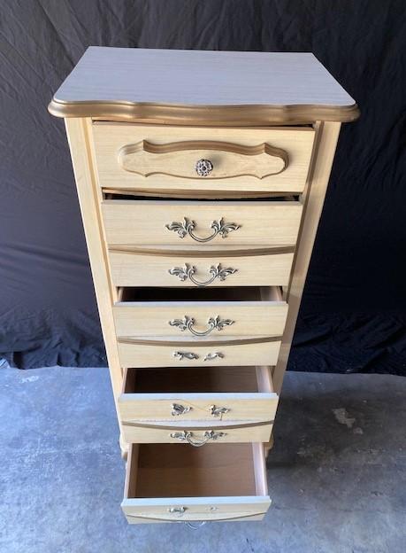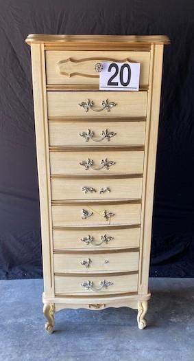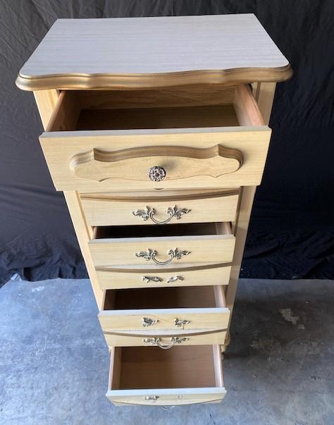Solid wood. 5 drawers. Some pulls are broken. Superficial staining; needs to be cleaned. Estimated weight of lot: 30lbs. Measurement: 50 1/2"H x 20"W x 14"D