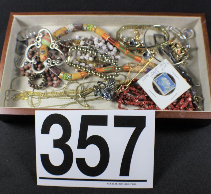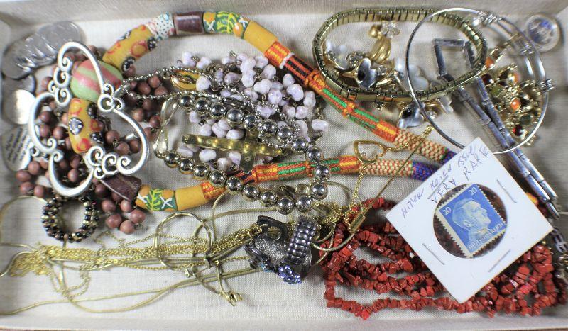 LOT#H357: Assorted Costume Jewelry Lot #9 Including 3rd Reich Stamp