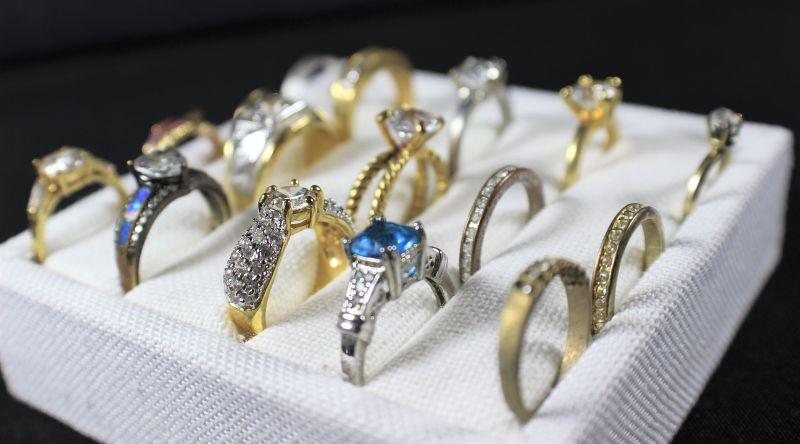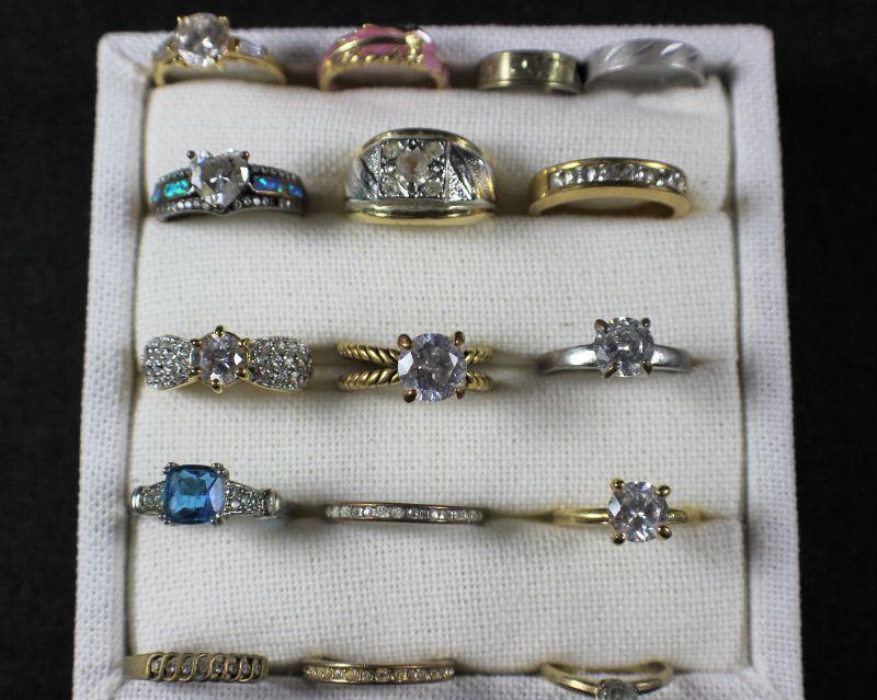 Both gold & silver toned rings. Multiple sizes & assorted stones.