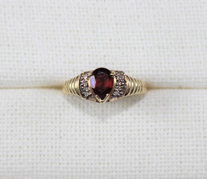 LOT#H371: Stamped 14K Gold Ring w/ Garnet Colored Stone [2.5g]
