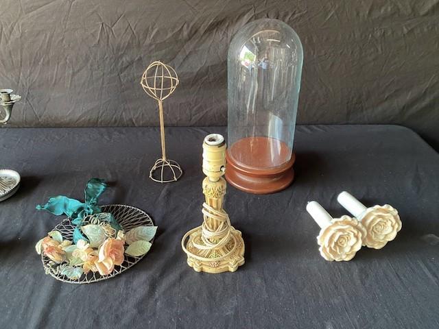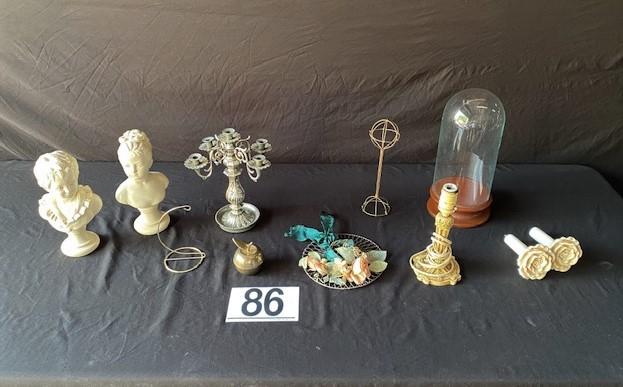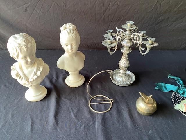 Includes candelabra, pair of busts, polychrome lamp, and more. Total of 11 pieces. Estimated weight of lot: lbs. Measurement: